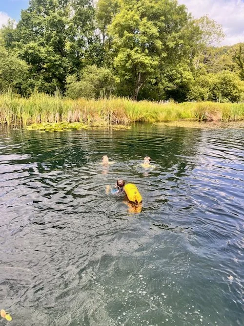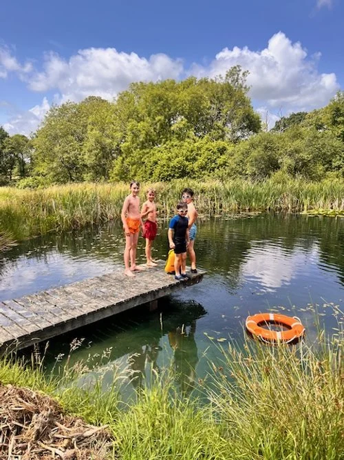 We all camped at Underhill for the weekend and had a lot of fun. We all set up the tents and then helped Hugo put out the moth traps. We then went swimming in the lake - it was very cold - and had a BBQ dinner. We played games and watched the barn owls leaving their box at dusk. Before bed we learned about some of the animal sounds we might hear in our tents and then settled down for sleep.