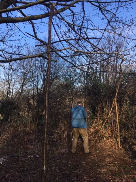 Working with my friend Dragan we constructed a hazel bridge, which connects one of the hedgerows to the block of most mature woodland. This block is about 4 acres in total and is a decent mix of native species - oak, ash, field maple, hazel. Late winter / early spring this year, I will plant honeysuckle in the hedgerow and across the hazel bridge. I am very keen to attract dormice into Underhill Wood Nature Reserve and this habitat enhancement is key.