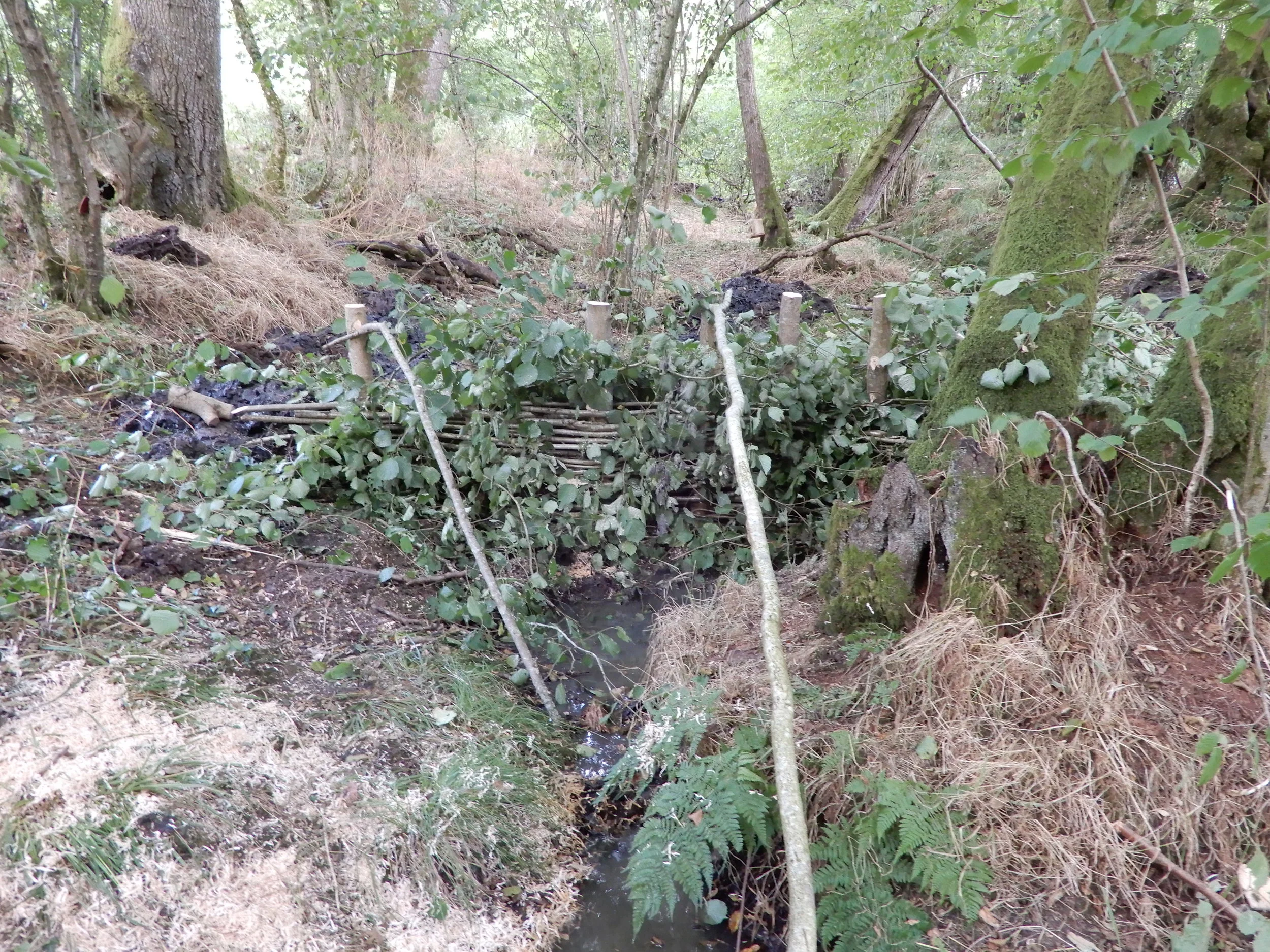Guided by ecologists Gareth Harris & Lisa Wade, inspired by Isabella Tree and working with Jack & Harry (in the picture above), last Monday (July 23rd) we constructed this Ecomimicking Beaver Dam in an appropriate section of the main stream, which runs east - west, through UWNR.